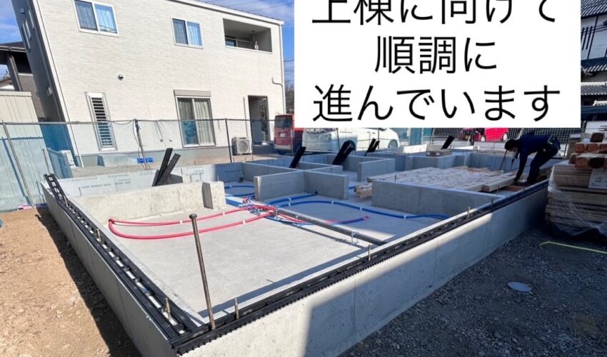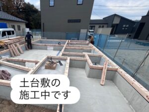 15日の上棟に向けて土台敷の施工が進んでいます。
