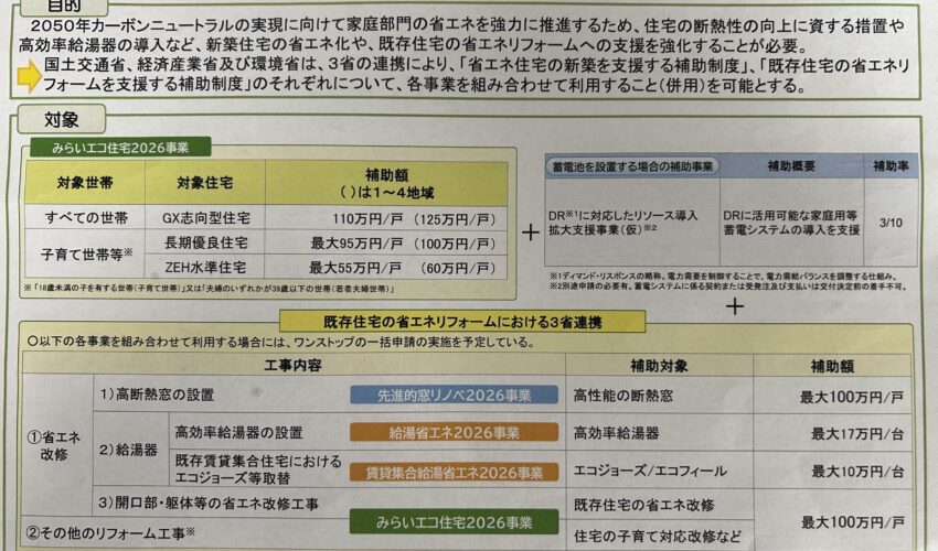 みらいエコ住宅に2026事業で、GX補助金の交付が決定されました。