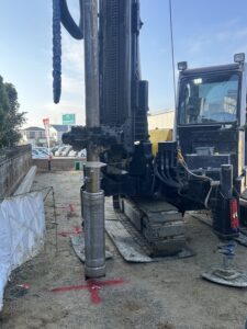 地盤改良工事、土壌処理と着々と工事が進んでいます。