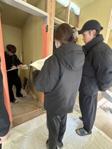 内装施工が進む中でイメージを持っていただきながらの打合せは