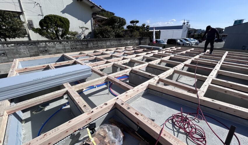宇城市の現場です。心配した雨も降らず、土台工事が順調に進んでいます。
