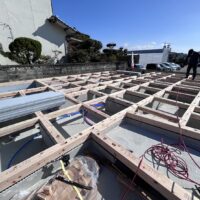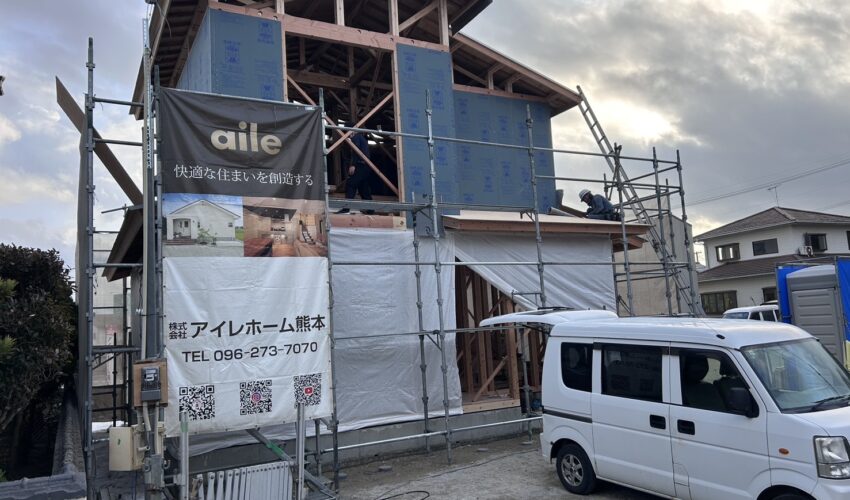 順調に作業が進みました。屋根のルーフィングシートも貼られて雨対策も完了です。