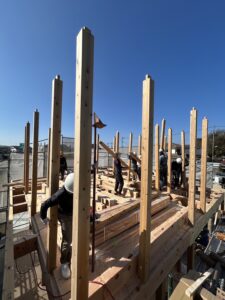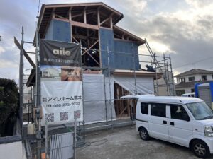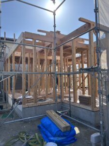 晴天に恵まれた中での上棟を行いました。