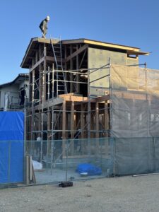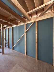 2日目は耐力壁ボードも貼り上棟が完了しました。