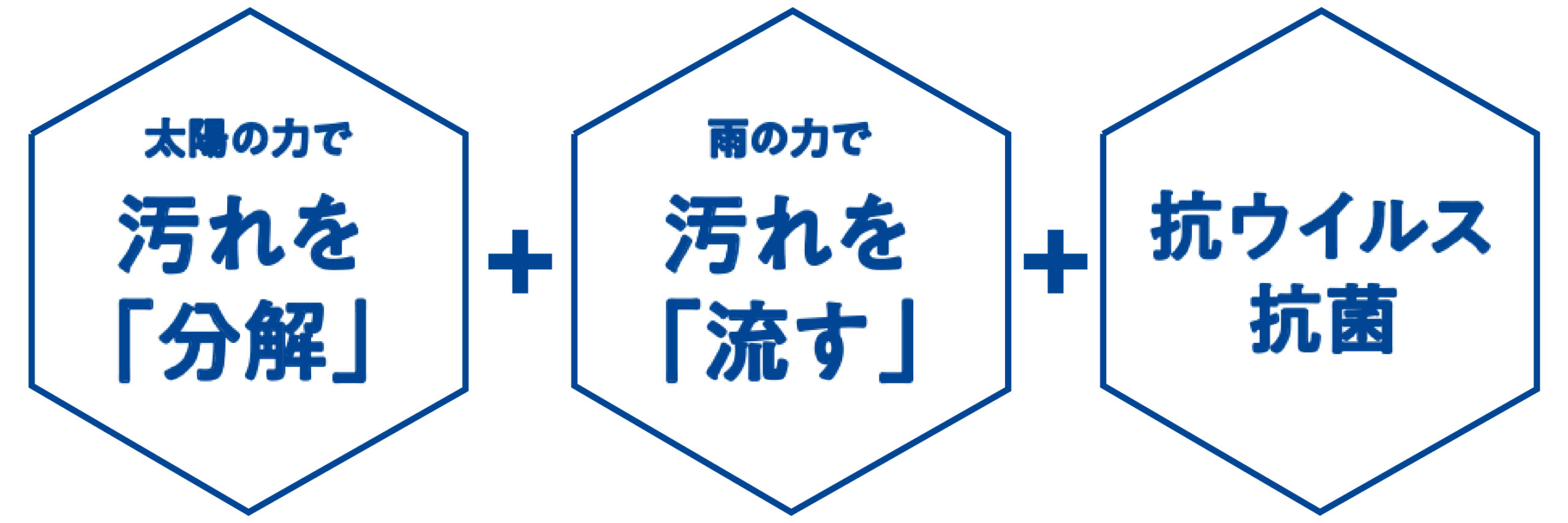 太陽の力で汚れをガッツリ分解し、雨で洗い流します。
