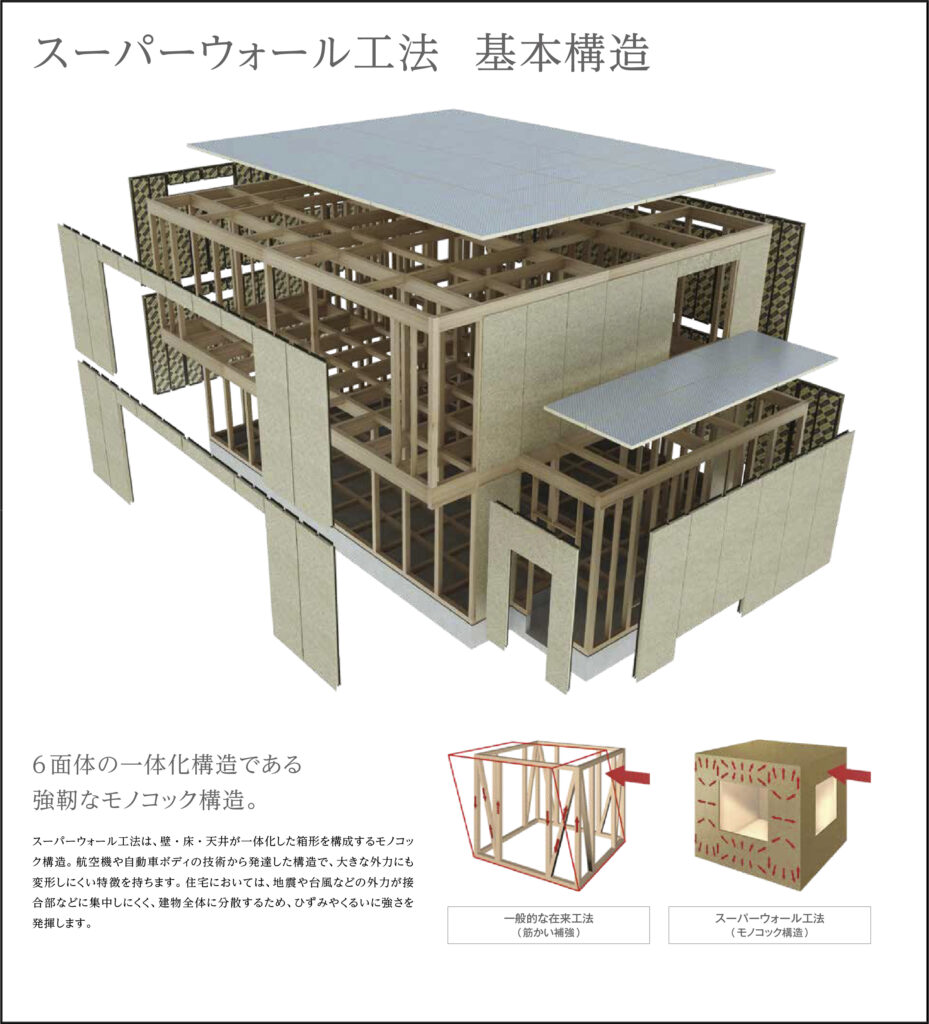 スーパーウォールの家は、工場で安定した品質管理のもと生産される硬質ウレタンフォーム断熱材を使用した工法です。素晴らしい高気密、高断熱で、エアコンの効率が画期的に良くなり省エネ住宅となり電気代のコストを大幅に削減することができます。35年無結露保証も画期的です。耐震性能も高く、安心安全のオプションアイテムとしてこれ以上ない心強さを発揮します。