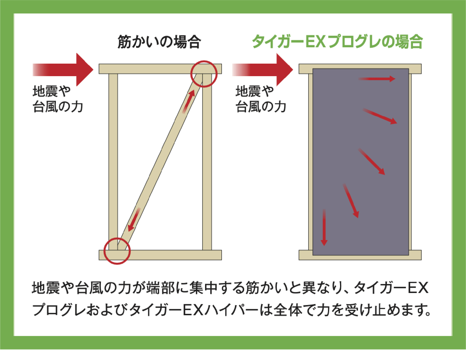 耐力壁ボード(タイガーハイパーEX)を採用しています。